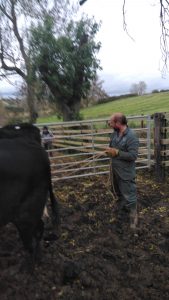 Train a spirited 6 year old ox (henry)….Well that is the plan. For him it means linking with a trained one and off he goes. First couple of sessions involved him being tied up (he was not used to that), next put a yoke on him next to another. he wanted to poke them but he could not reach through the yoke distance. Next stage take him for his first walk. We partnered him with a semi trained ox (Bala) with the thought that his passion would be balanced off by his sober colleague. Started off well….but then he decided he did not like being driven by a person from behind so he started to spin round to see who was behind him. Next thing you know the driver drops the driving reins and the two of them take off down the field….until they found a hedge and ran into it. A bit of untangling of ropes by use of a knife and we were back on track. Next thing he reminded himself that he does not like being driven by a person he cant see directly so he tries to turn around and lo and behold the yoke flips…. End of the training session. Next session I will partner him with a more dominant ox who he is junior to. Perseverance, persistence firmness and kindness. He does not know yet how much fun he is going to have as a trained ox. Henry is the Black and white one.